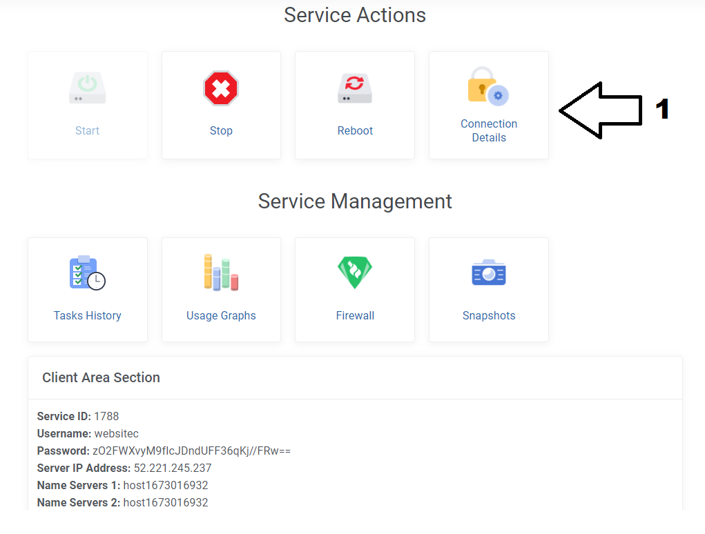 1. Go to the Windows VPS control panel in the admin area and click Connection Details