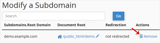 3. Under the Modify a Subdomain list, you can see a list of subdomains.