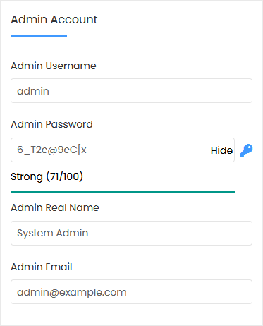 • Admin Real Name: Leave this as it is or use your full name.