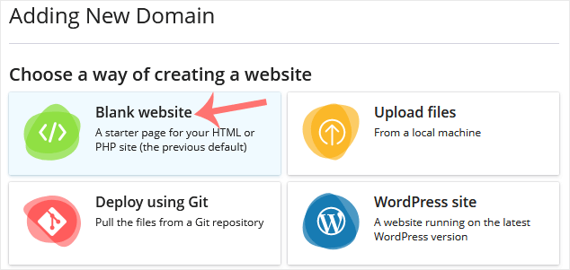 - Hosting Type: Select Website Hosting from the drop-down menu. You can leave all other options as they are.