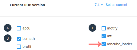 4. Checkmark the ioncube_loader. Once enabled, it will display a success message.